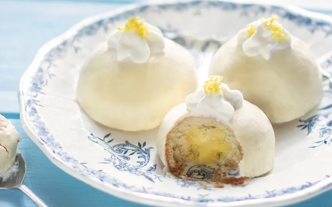 - Preparate il pan di Spagna: montate uova e zucchero, aggiungete la farina e la scorza, versate in stampini semisferici e cuocete a 180°C per 15 minuti.